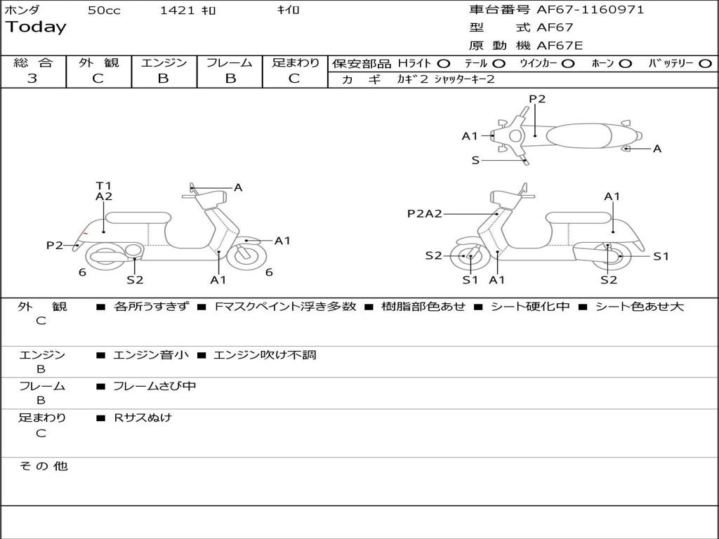 | Номер рамы / VIN | AF67-1160971 |