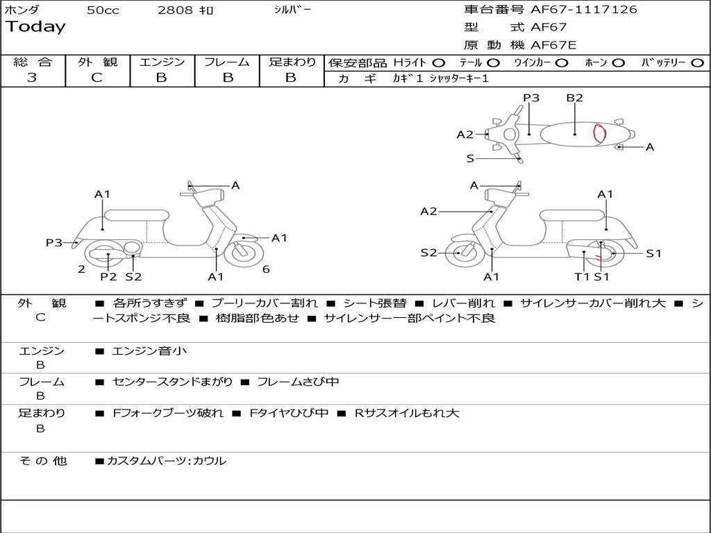 | Номер рамы / VIN | AF67-1117126 |