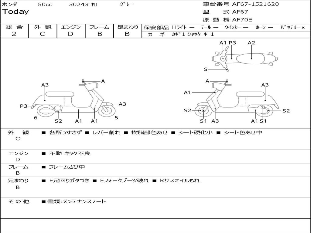 | Номер рамы / VIN | AF67-1521620 |