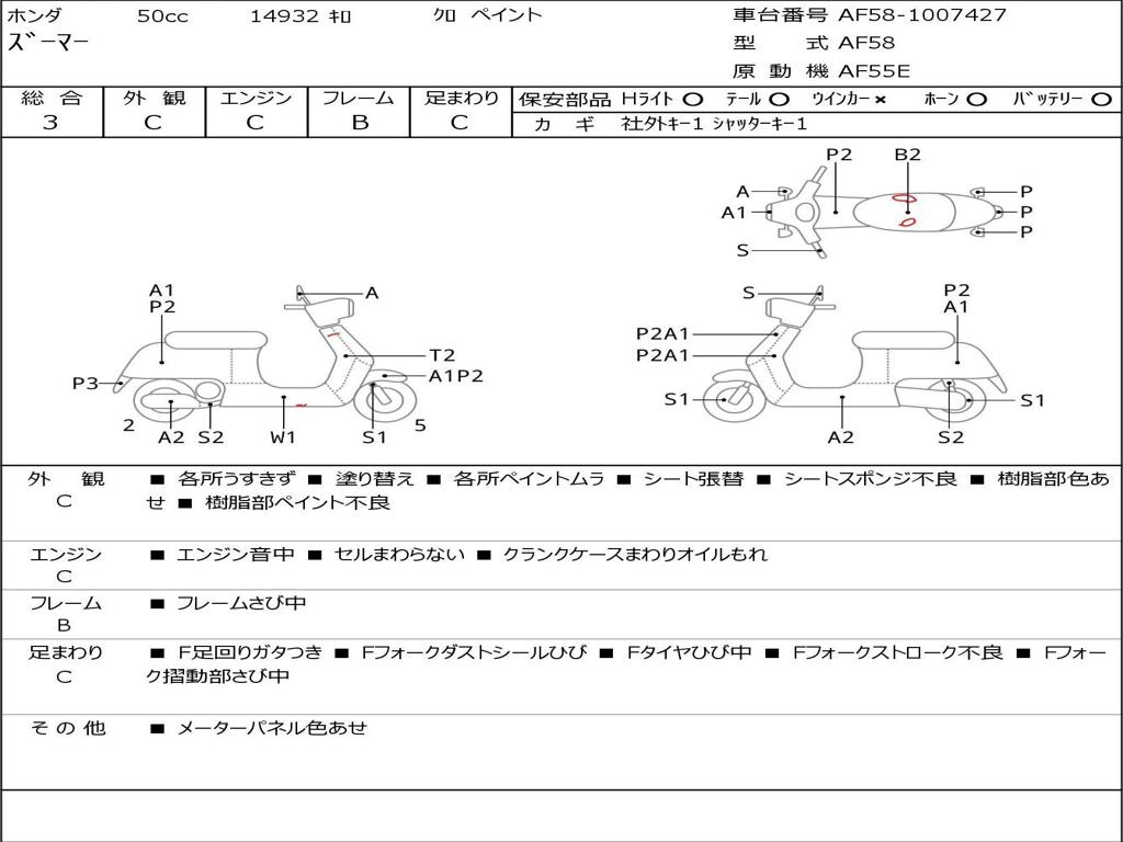 | Номер рамы / VIN | AF58-1007427 |
