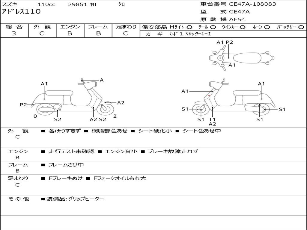 | Номер рамы / VIN | CE47A-108083 |