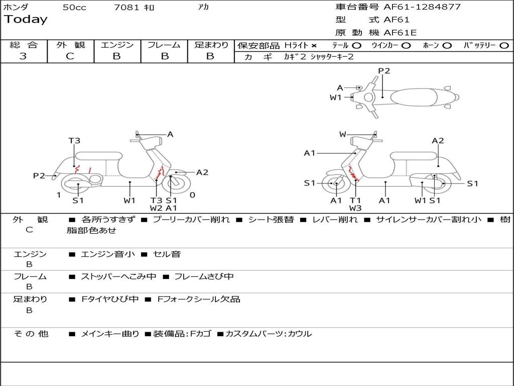| Номер рамы / VIN | AF61-1284877 |