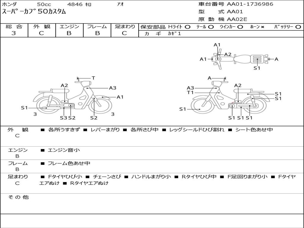 | Номер рамы / VIN | AA01-1736986 |
