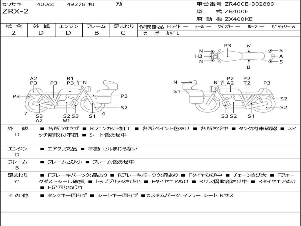 | Номер рамы / VIN | ZR400E-302889 |