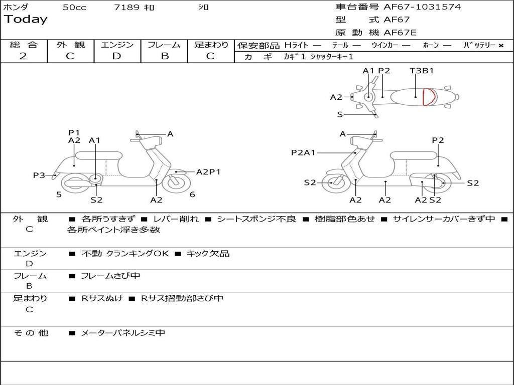 | Номер рамы / VIN | AF67-1031574 |
