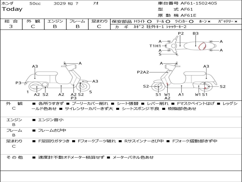 | Номер рамы / VIN | AF61-1502405 |