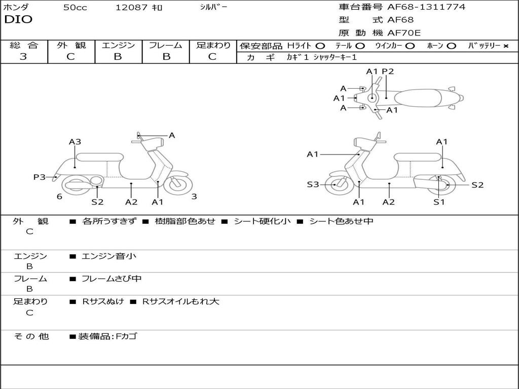 | Номер рамы / VIN | AF68-1311774 |