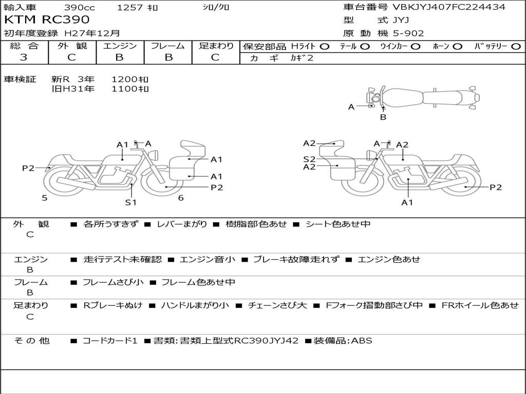 Номер рамы / VIN | VBKJYJ407FC224434 |
