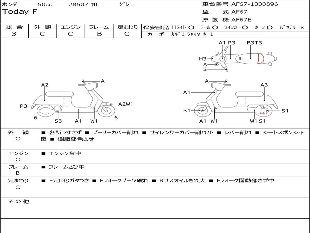 | Номер рамы / VIN | AF67-1300896 |