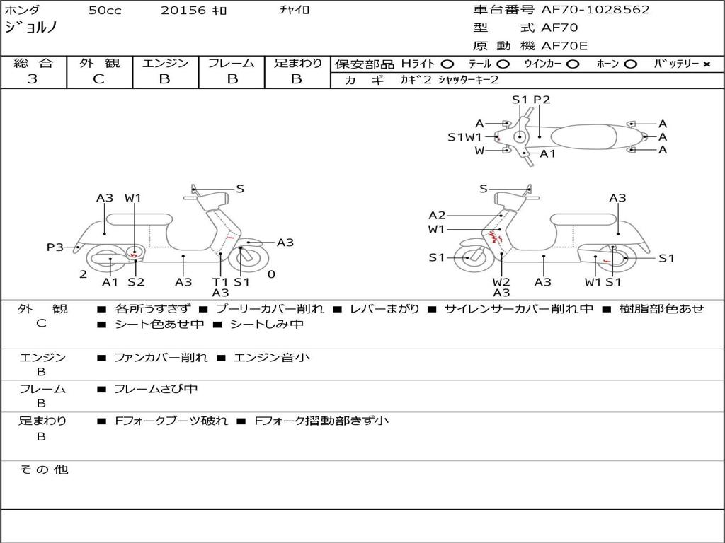 | Номер рамы / VIN | AF70-1028562 |