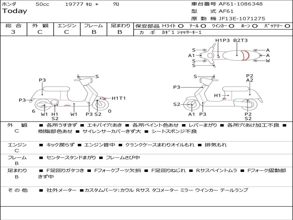 | Номер рамы / VIN | AF61-1086348 |