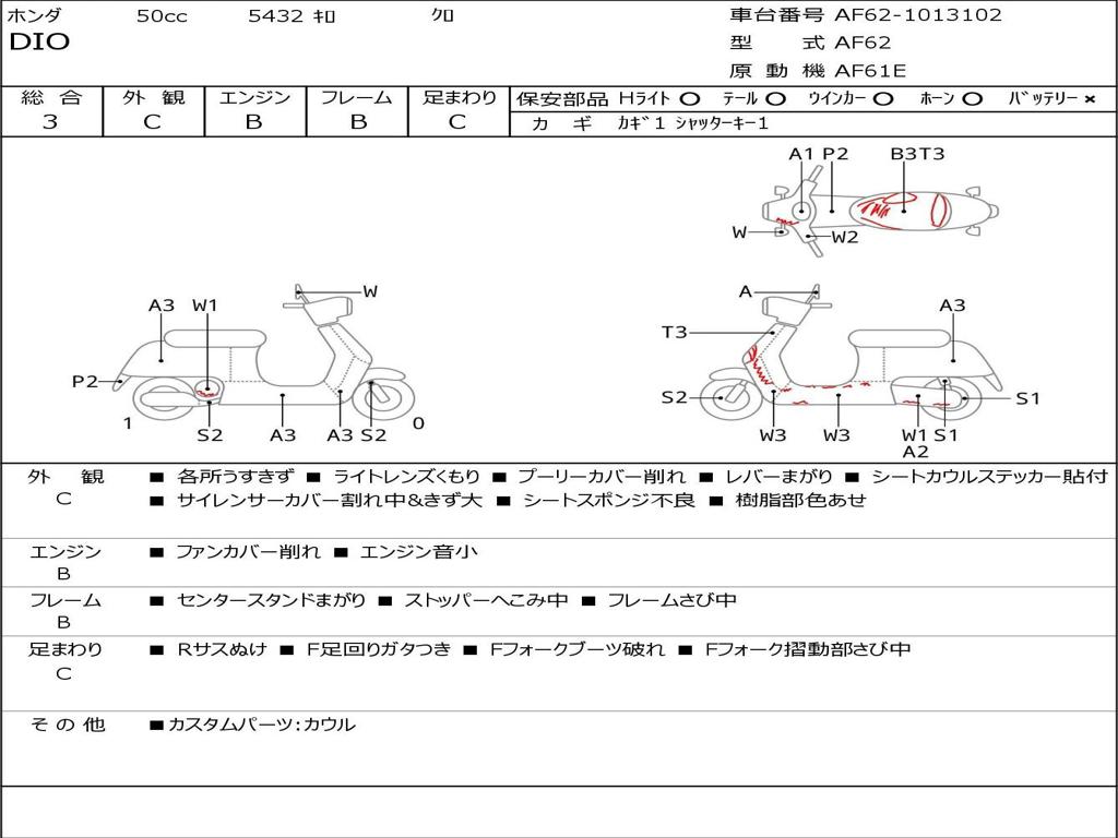 | Номер рамы / VIN | AF62-1013102 |