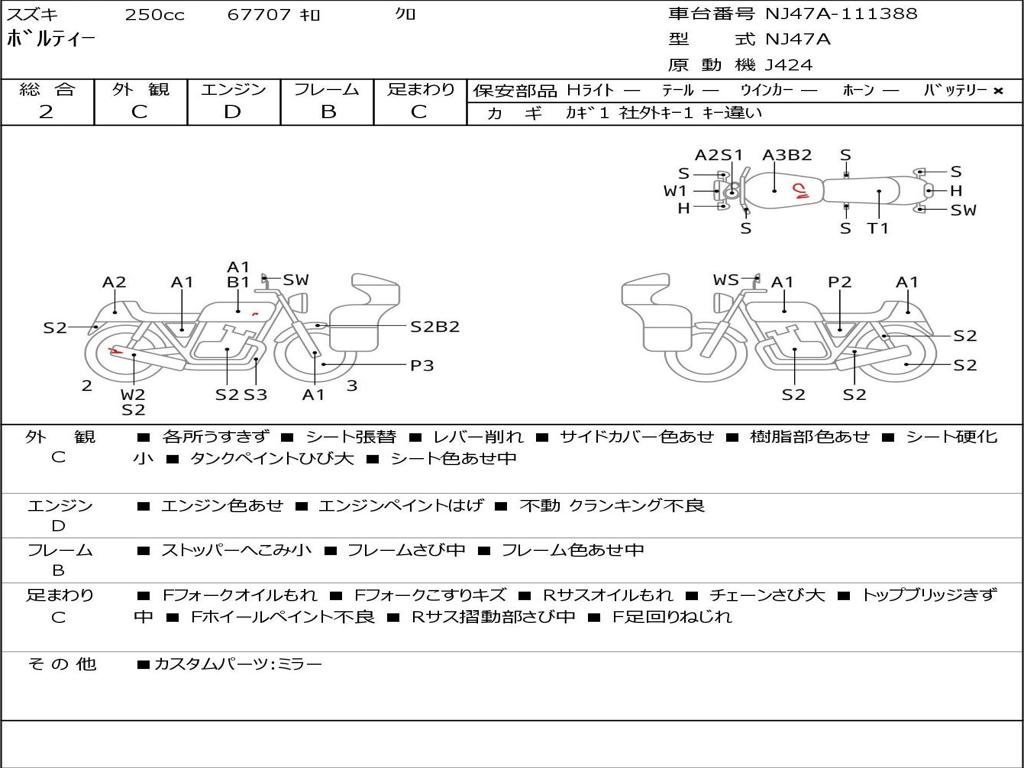 | Номер рамы / VIN | NJ47A-111388 |