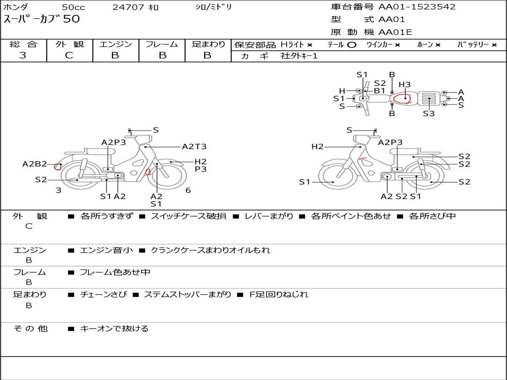 | Номер рамы / VIN | AA01-1523542 |