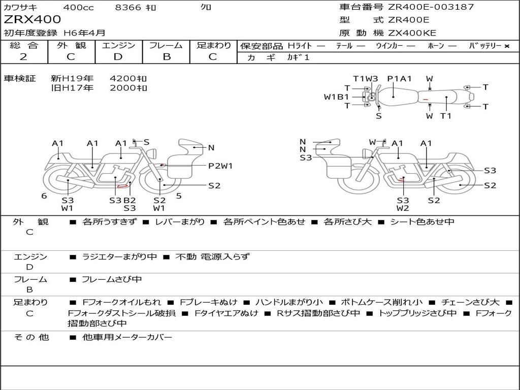 | Номер рамы / VIN | ZR400E-003187 |