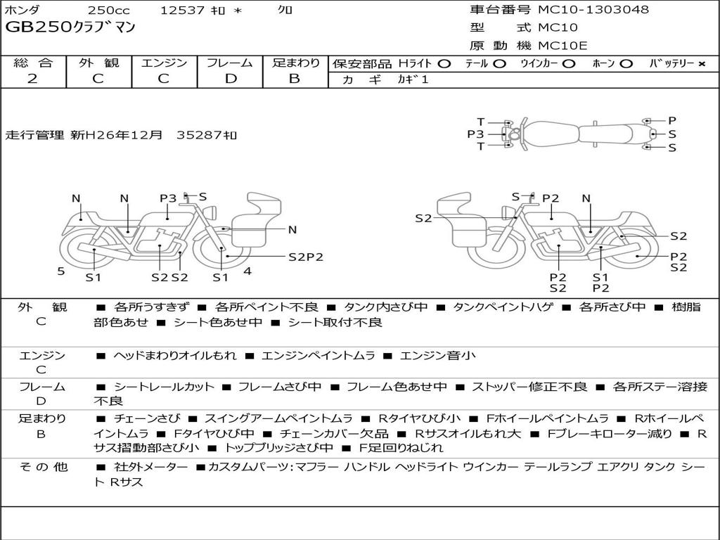 | Номер рамы / VIN | MC10-1303048 |