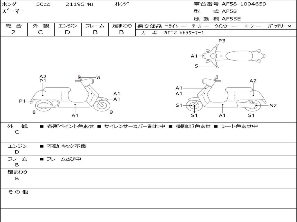 | Номер рамы / VIN | AF58-1004659 |