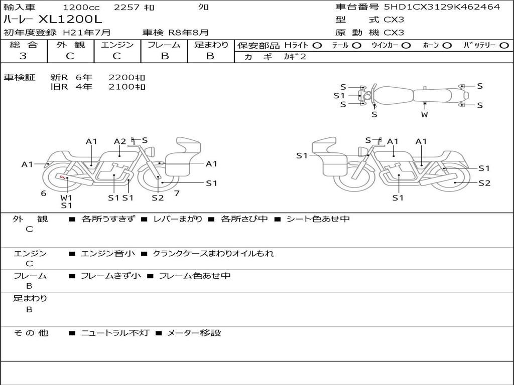 | Номер рамы / VIN | 5HD1CX3129K462464 |