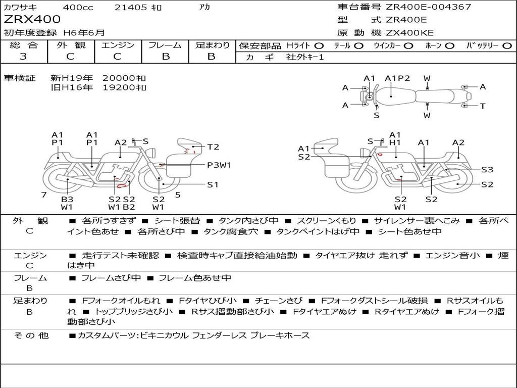 | Номер рамы / VIN | ZR400E-004367 |