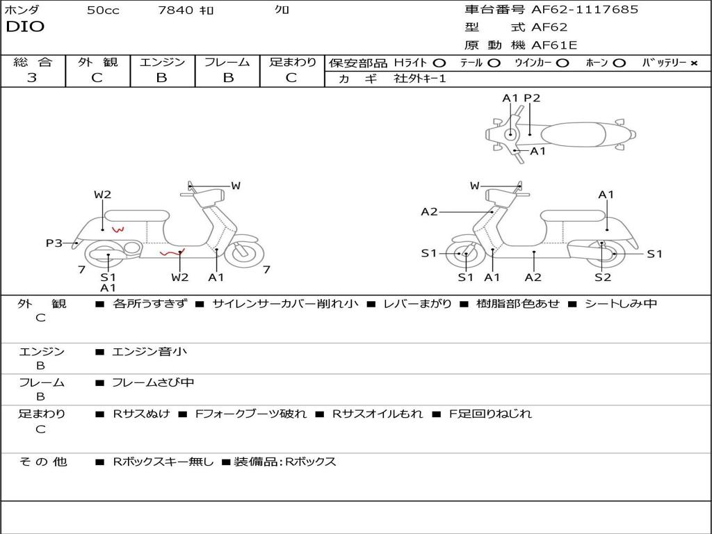 | Номер рамы / VIN | AF62-1117685 |