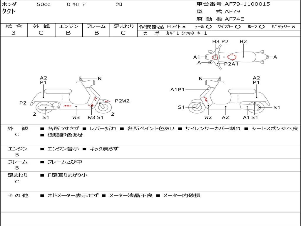 | Номер рамы / VIN | AF79-1100015 |