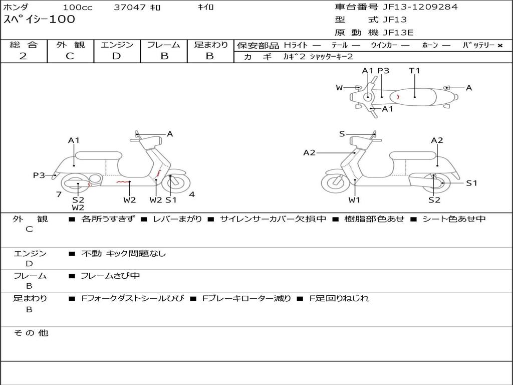 | Номер рамы / VIN | JF13-1209284 |