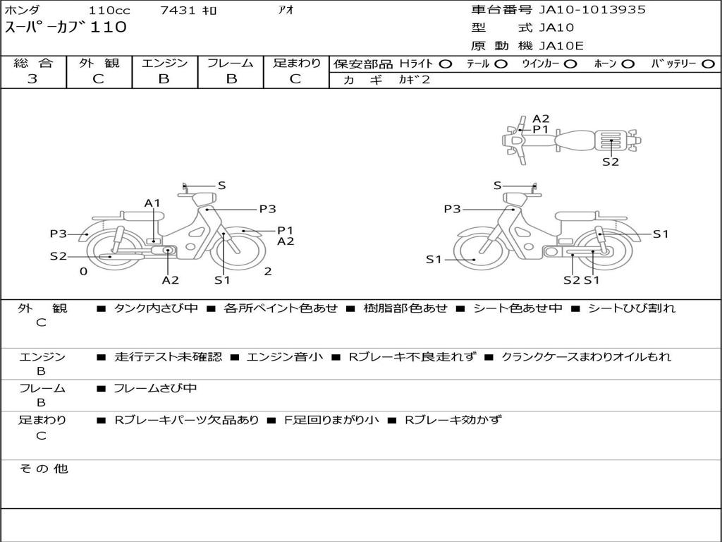 | Номер рамы / VIN | JA10-1013935 |