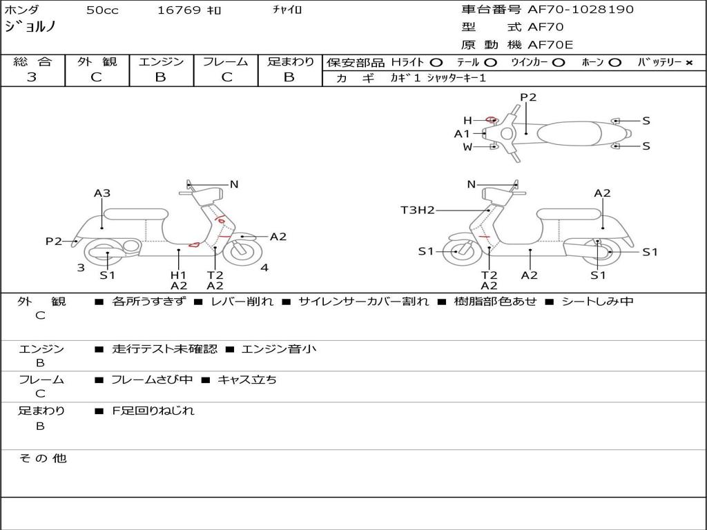 Номер рамы / VIN | AF70-1028190 |