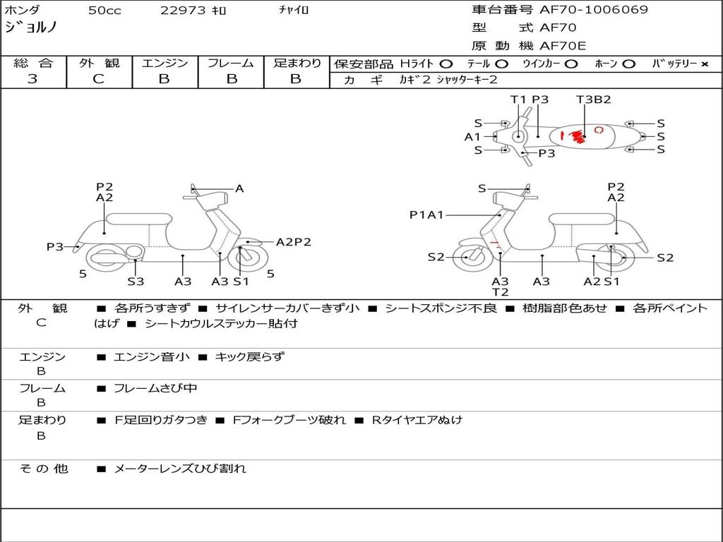 | Номер рамы / VIN | AF70-1006069 |