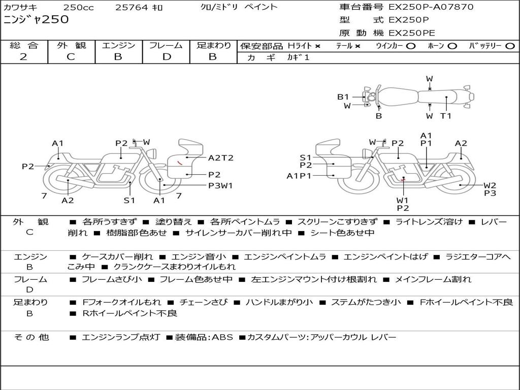 | Номер рамы / VIN | EX250P-A07870 |