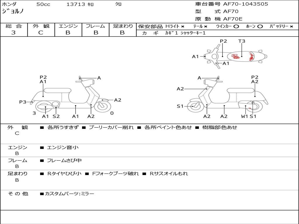 | Номер рамы / VIN | AF70-1043505 |