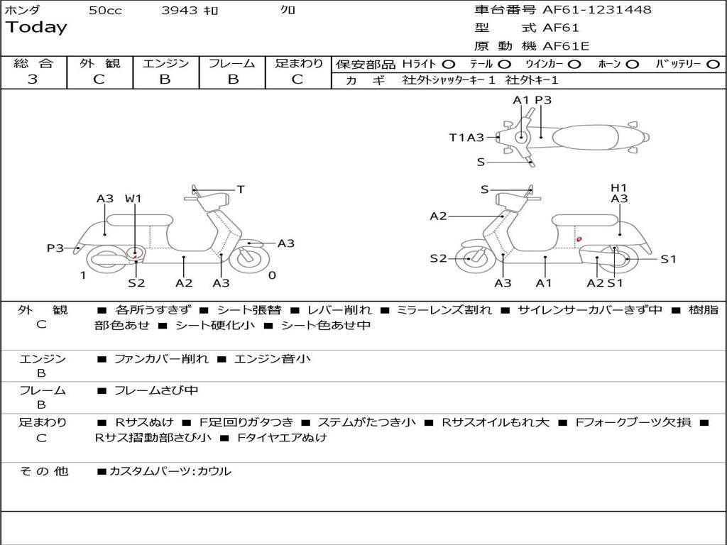 | Номер рамы / VIN | AF61-1231448 |