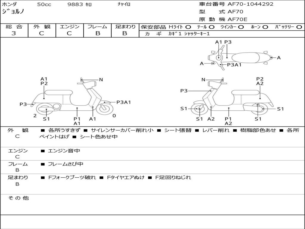 | Номер рамы / VIN | AF70-1044292 |