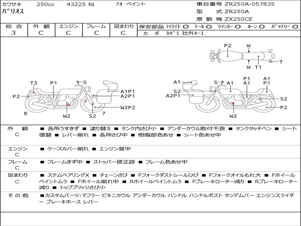 | Номер рамы / VIN | ZR250A-057835 |