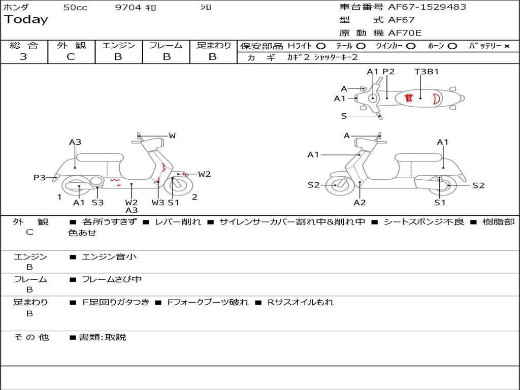 | Номер рамы / VIN | AF67-1529483 |