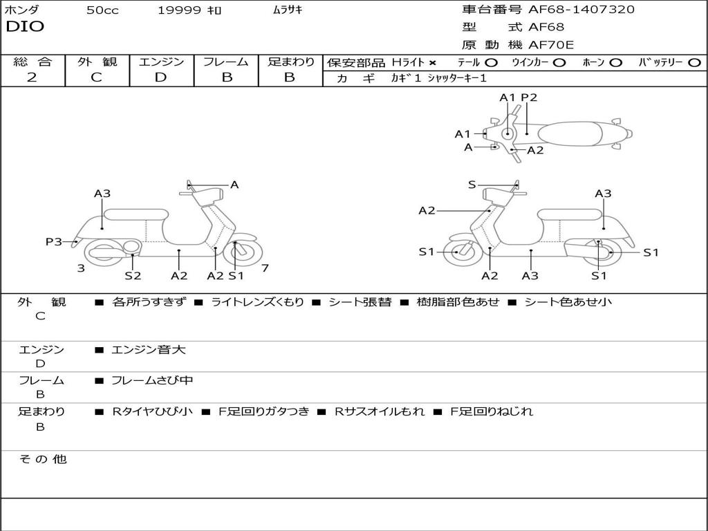 | Номер рамы / VIN | AF68-1407320 |