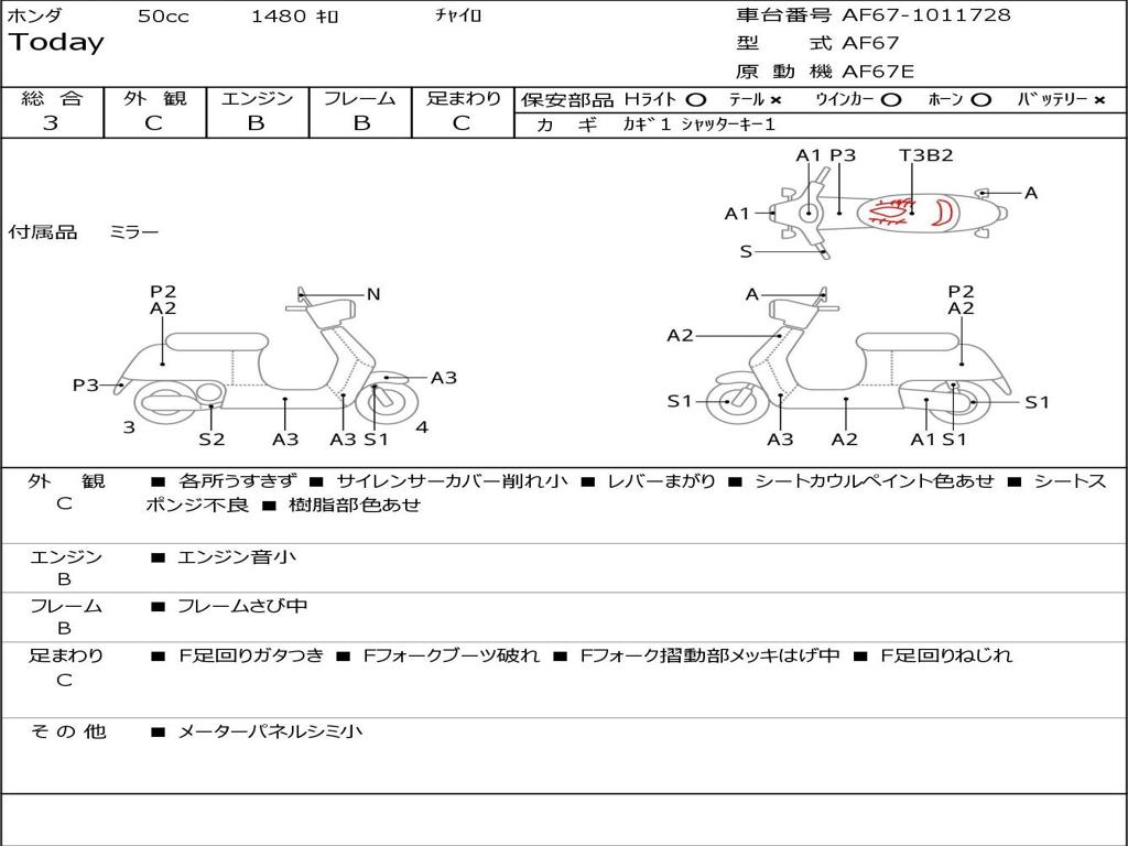 | Номер рамы / VIN | AF67-1011728 |