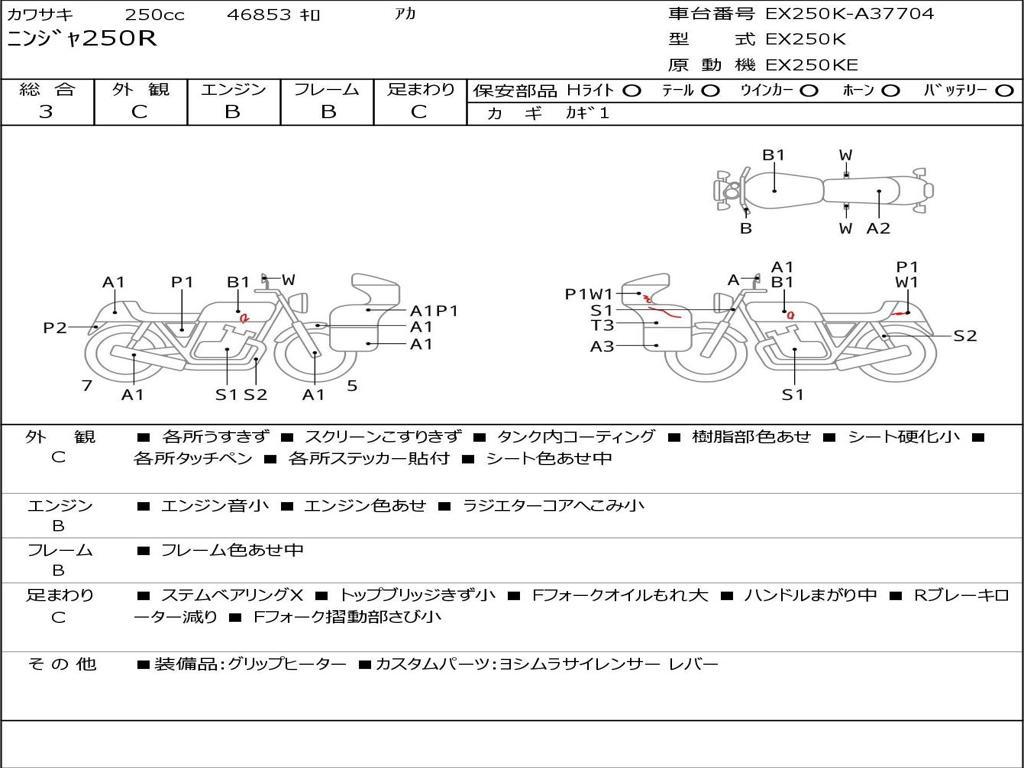 | Номер рамы / VIN | EX250K-A37704 |
