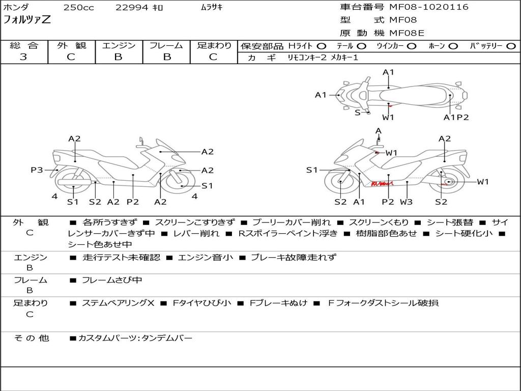 | Номер рамы / VIN | MF08-1020116 |