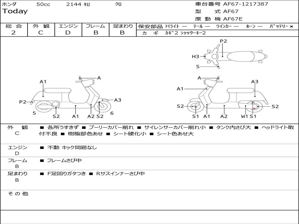| Номер рамы / VIN | AF67-1217387 |