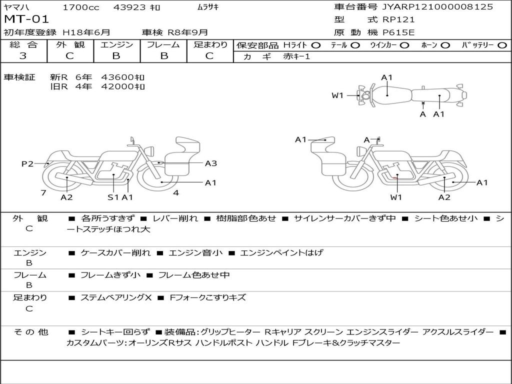 | Номер рамы / VIN | JYARP121000008125 |