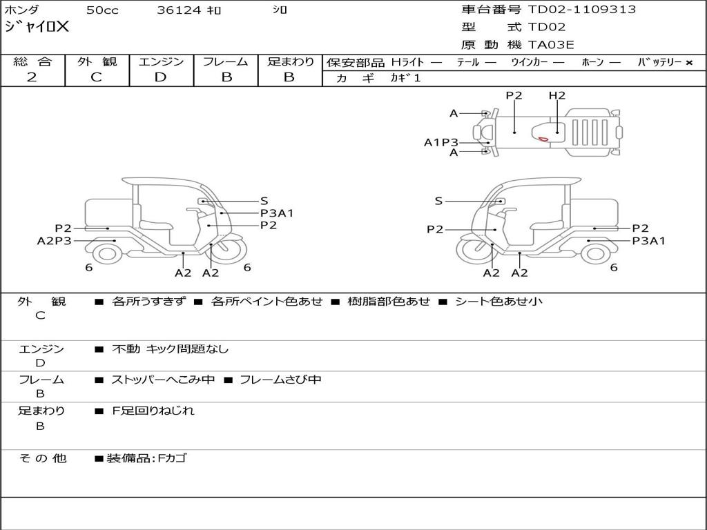 | Номер рамы / VIN | TD02-1109303H |