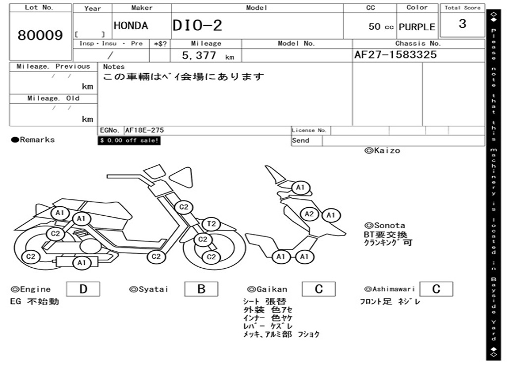 | Аукцион | ARAI BAYSIDE |