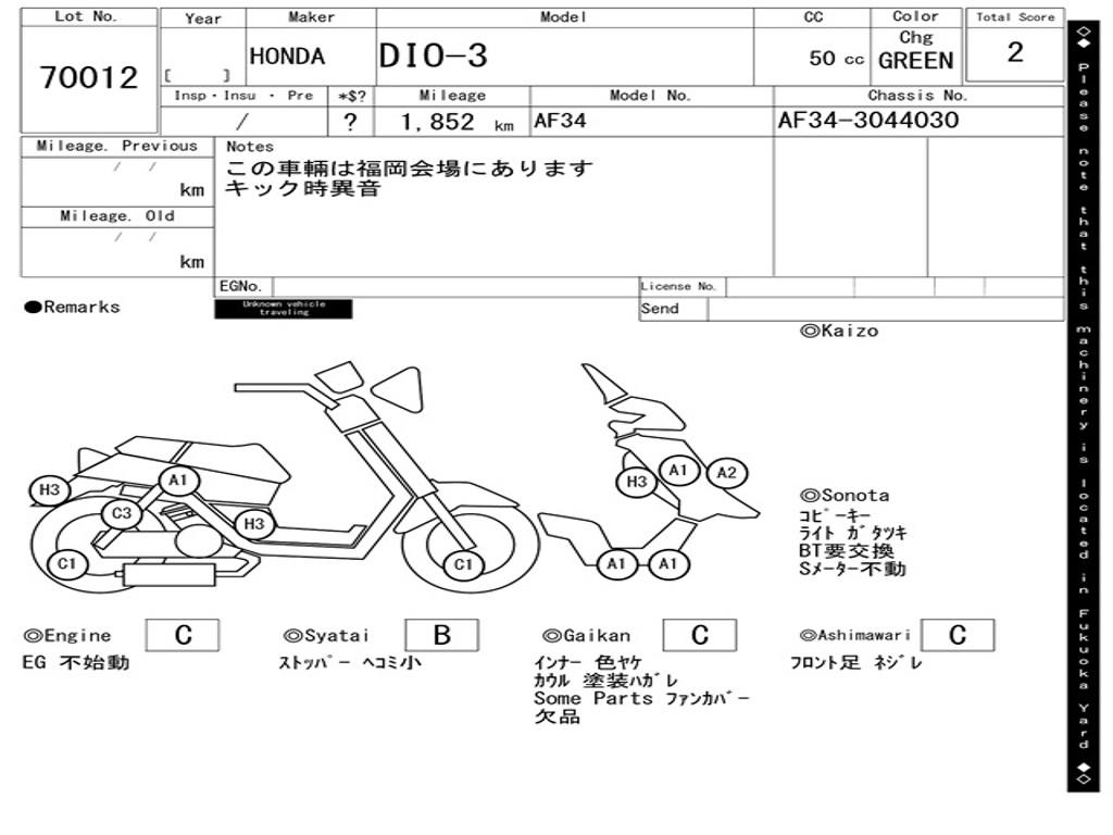 | Номер рамы / VIN | AF34-3044030 |