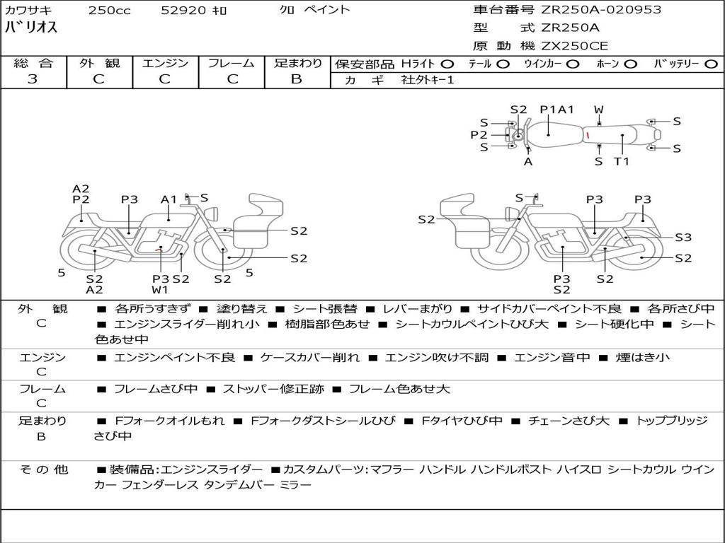 | Номер рамы / VIN | ZR250A-020953 |