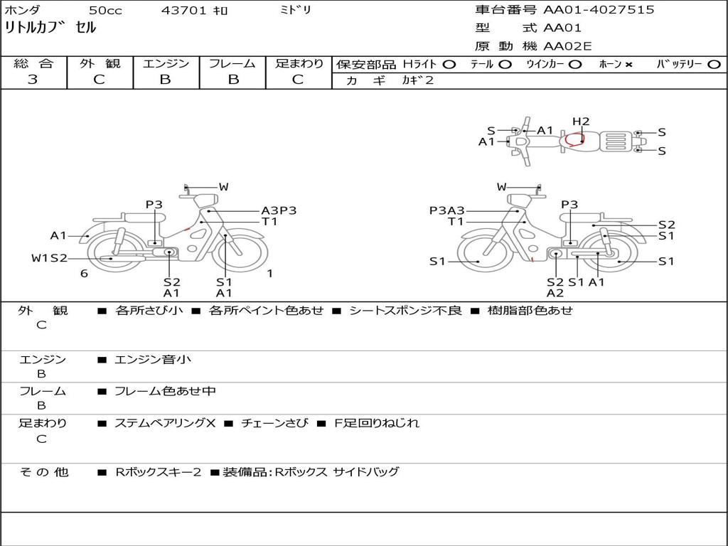 | Номер рамы / VIN | AA01-4027515 |