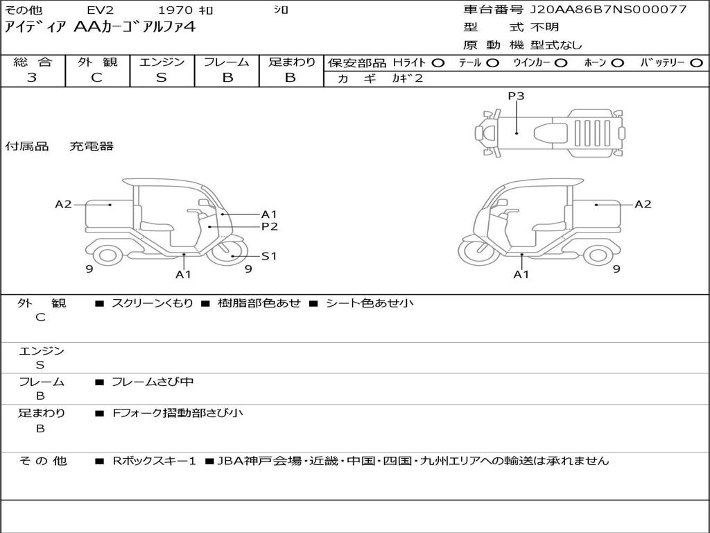| Номер рамы / VIN | J20AA86B7NS000077 |