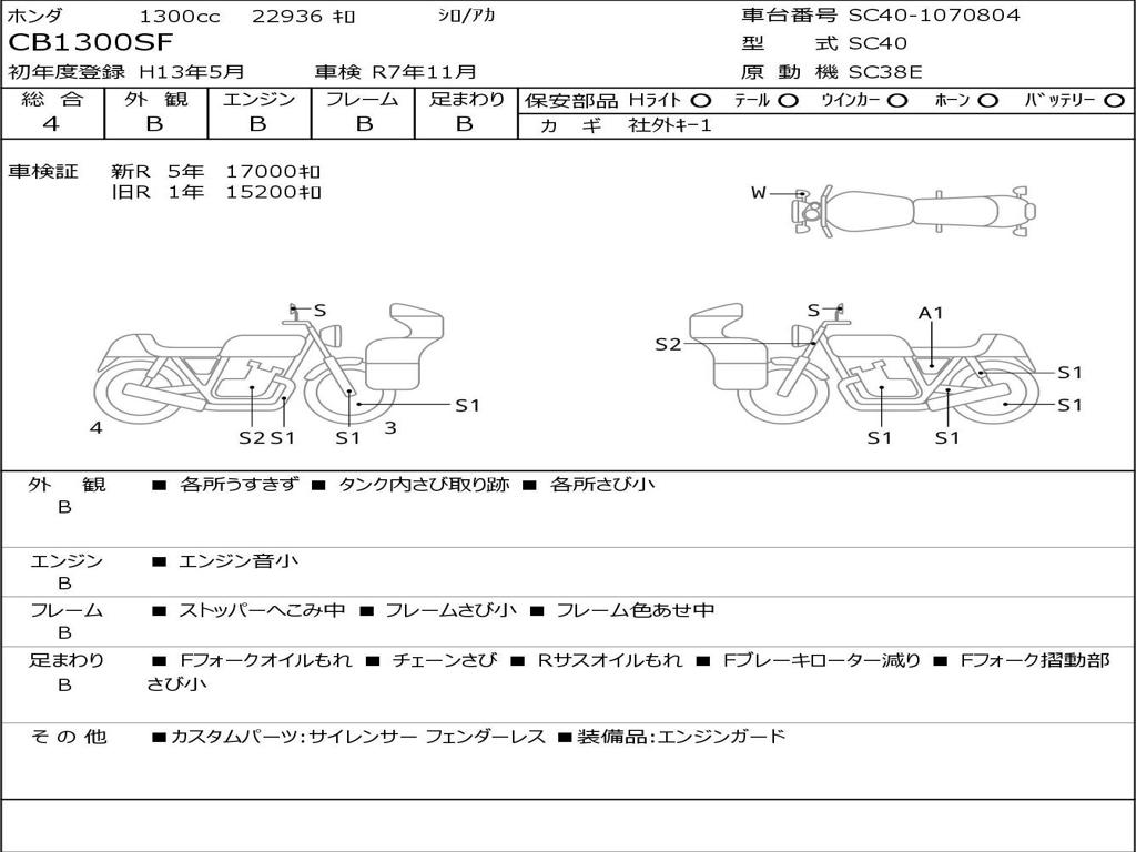 | Номер рамы / VIN | SC40-1070804 |