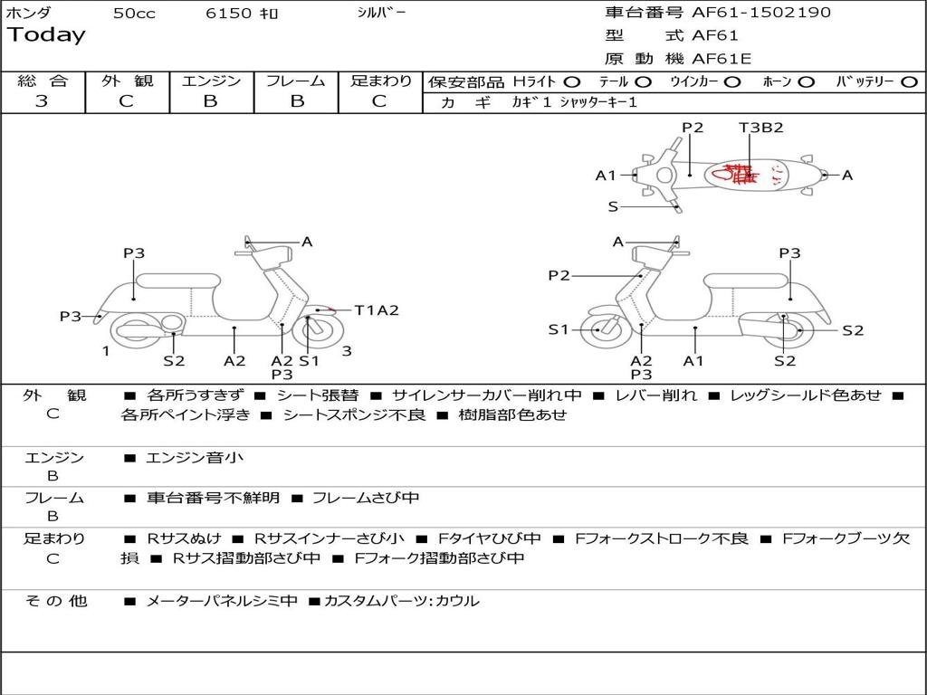 | Номер рамы / VIN | AF61-1502190 |