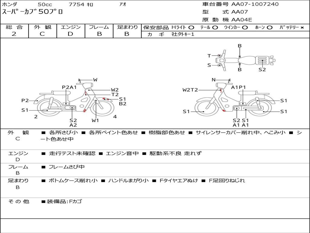 | Номер рамы / VIN | AA07-1007240 |